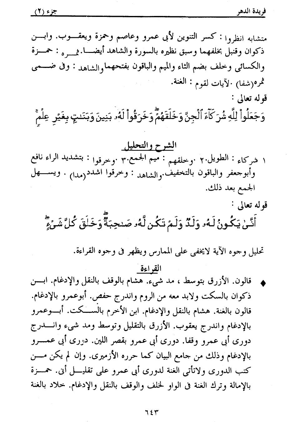 كتاب فريدة الدهر في تأصيل وجمع القراءات (اسم الجزء: 2)