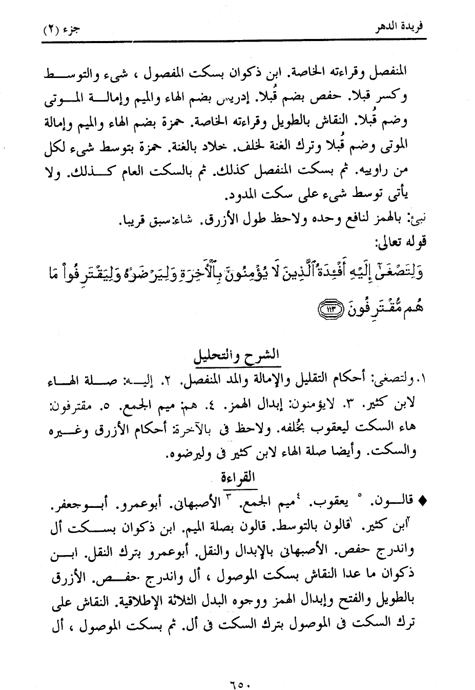 كتاب فريدة الدهر في تأصيل وجمع القراءات (اسم الجزء: 2)
