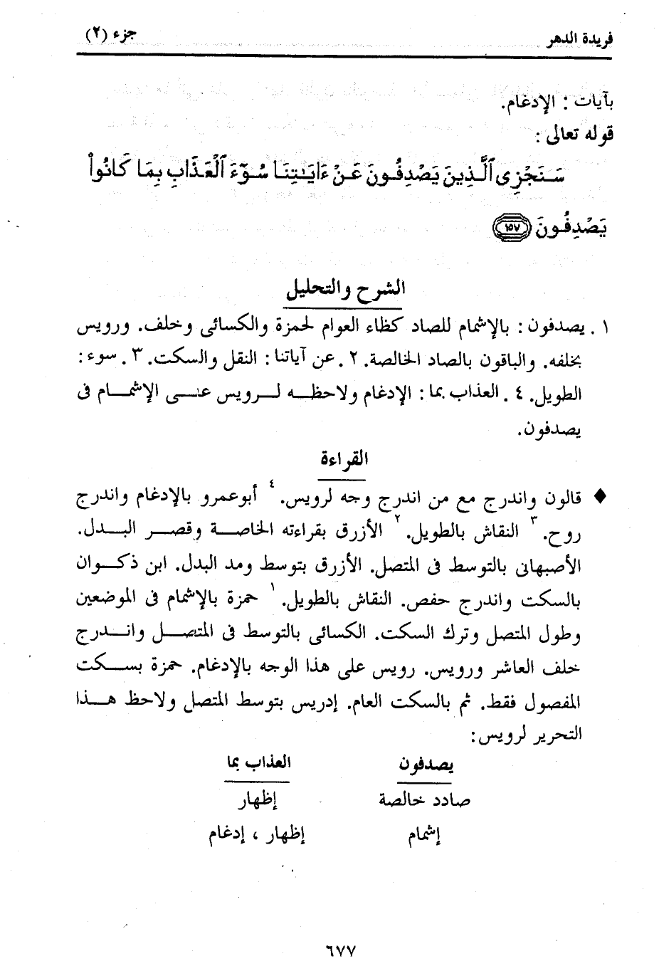 قالون واندرج مع من اندرج وجه لرويس. 4 أبو عمرو بالإدغام واندرج روح. 3 النقاش بالطويل. 2 الأزرق بقراءته الخاصة وقصر البدل.
