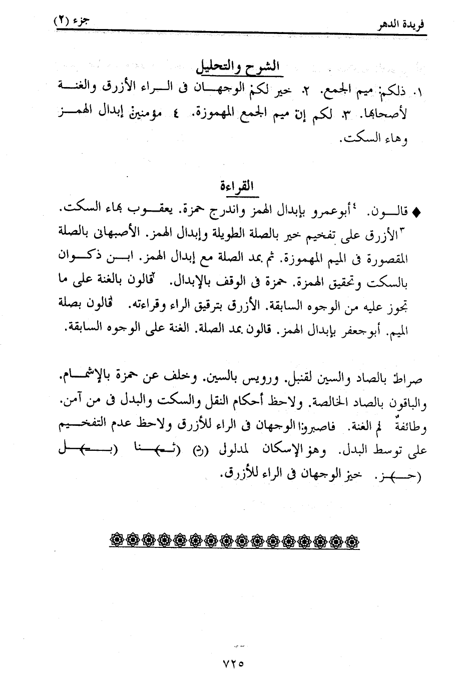 3 الأزرق على تفخيم خير بالصلة الطويلة وإبدال الهمز. الأصبهانى بالصلة المقصورة فى الميم المهموزة. ثم بمد الصلة مع إبدال الهمز. ابن ذكوان بالسكت وتحقيق الهمزة. حمزة فى الوقف بالإبدال. 2 قالون بالغنة على ما تجوز عليه من الوجوه السابقة. الأزرق بترقيق الراء وقراءته. 1 قالون بصلة الميم. أبو جعفر بإبدال الهمز. قالون بمد الصلة. الغنة على الوجوه السابقة.