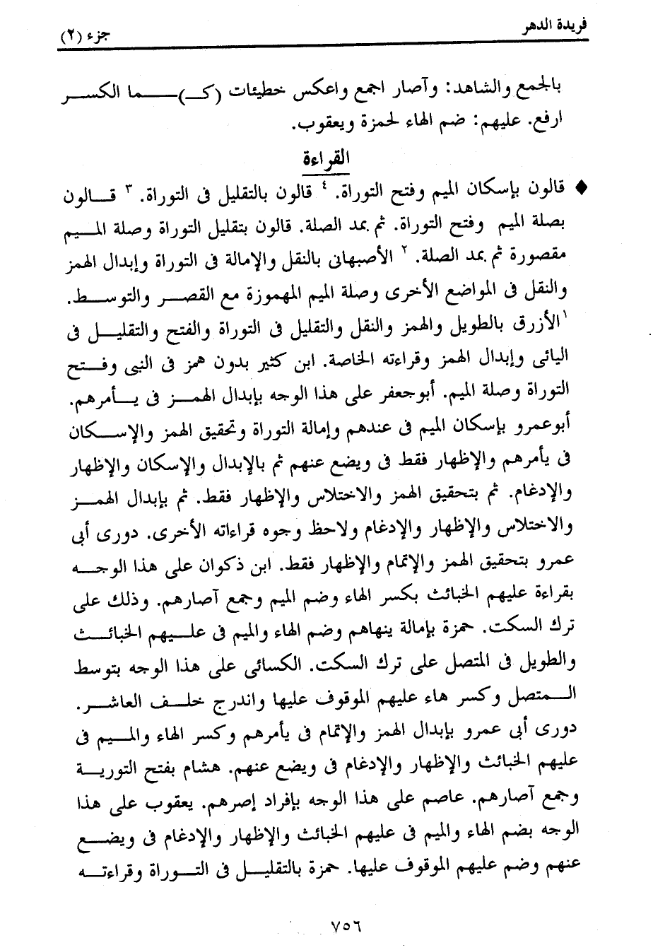 الأصبهانى بالنقل والإمالة فى التوراة وإبدال الهمز والنقل فى المواضع الأخرى وصلة الميم المهموزة مع القصر والتوسط.