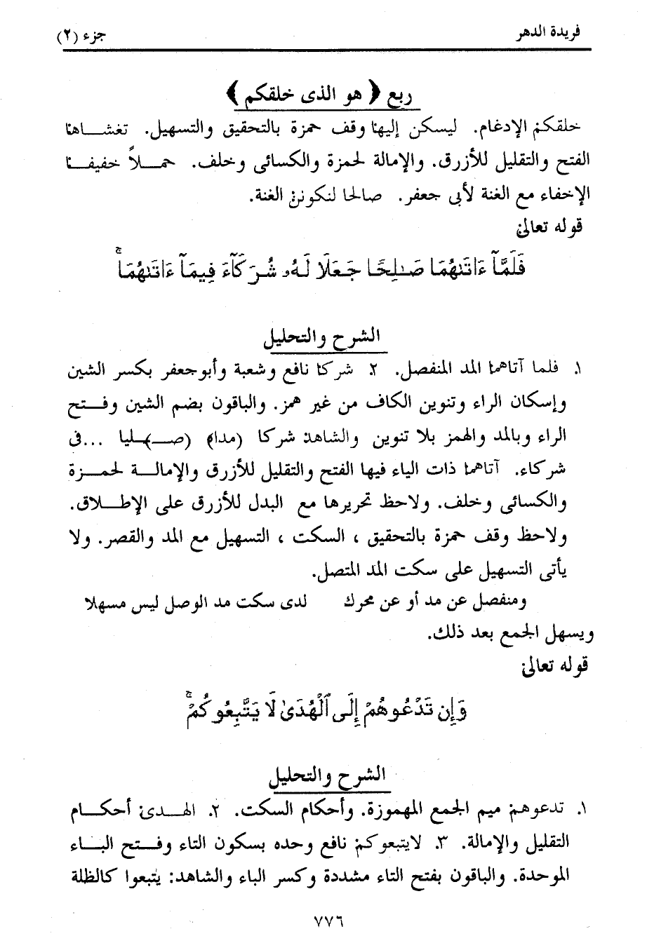 كتاب فريدة الدهر في تأصيل وجمع القراءات (اسم الجزء: 2)
