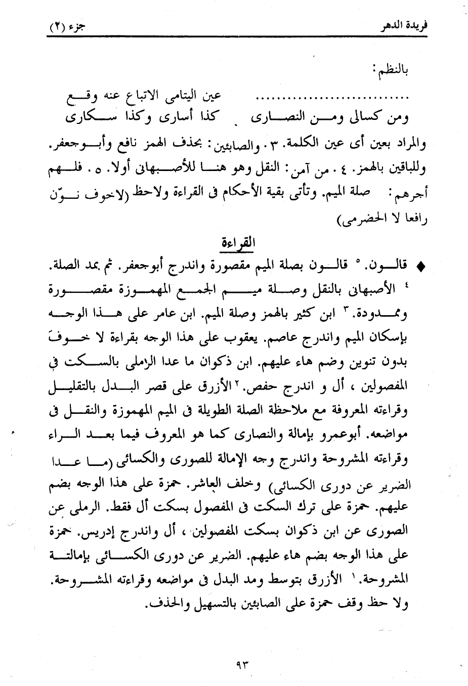 كتاب فريدة الدهر في تأصيل وجمع القراءات (اسم الجزء: 2)