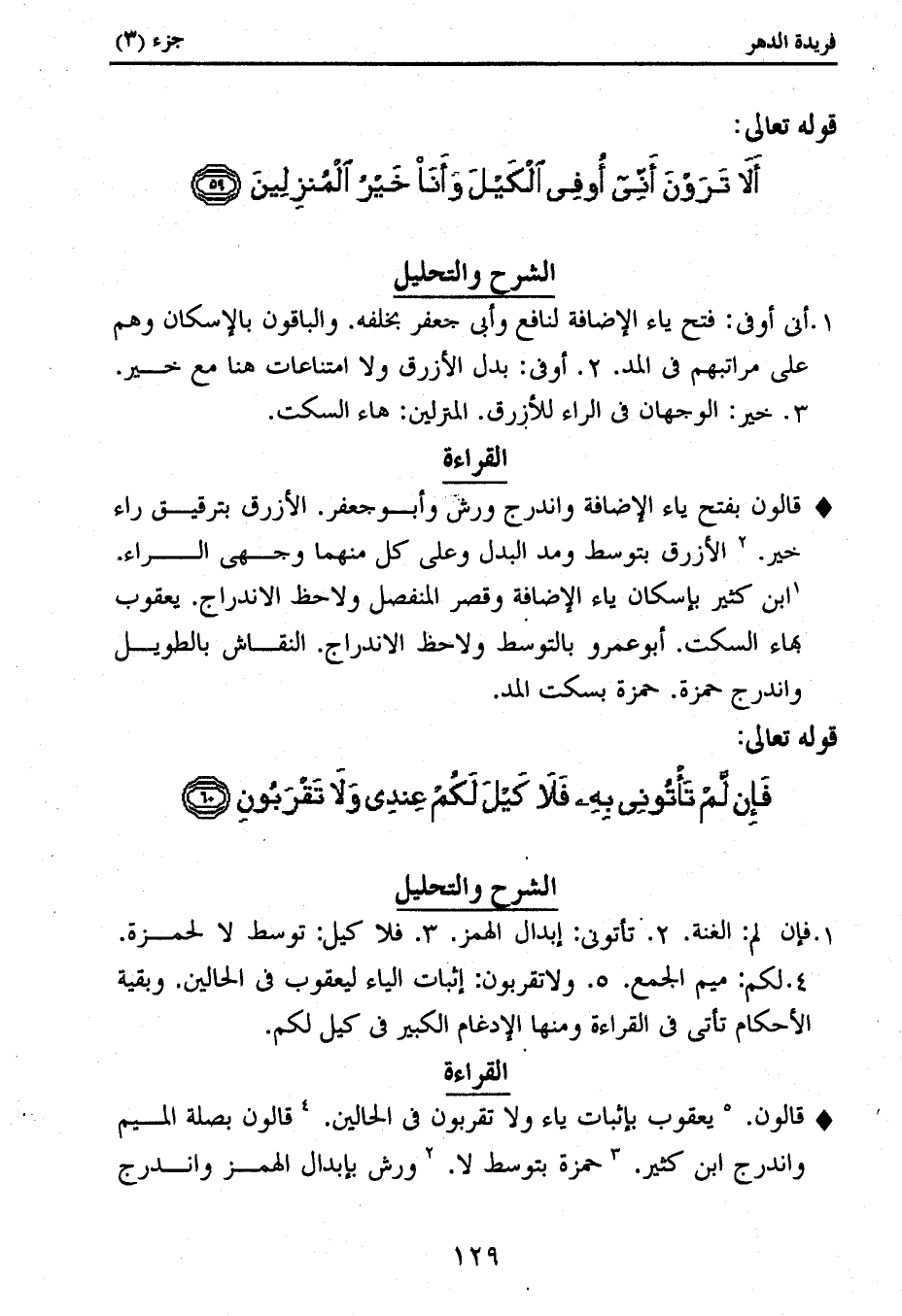 1. فإن لم: الغنة. 2. تأتونى: إبدال الهمز. 3. فلا كيل: توسط لا لحمزة.