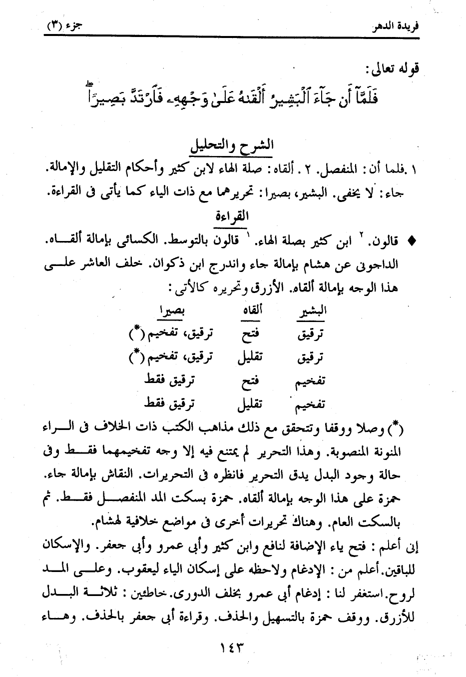 جاء: لا يخفى. البشير، بصيرا: تحريرهما مع ذات الياء كما يأتى فى القراءة.