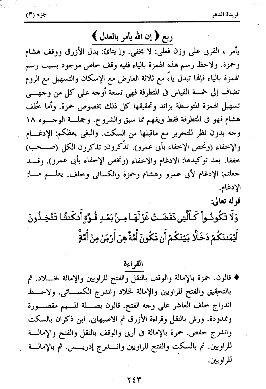 كتاب فريدة الدهر في تأصيل وجمع القراءات (اسم الجزء: 3)