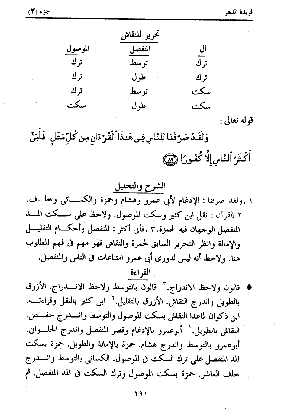 2. القرآن: نقل ابن كثير وسكت الموصول. ولاحظ على سكت المد المنفصل الوجهان فيه لحمزة. 3. فأبى أكثر: المنفصل وأحكام التقليل والإمالة وانظر التحرير السابق لحمزة والنقاش فهو مهم فى فهم المطلوب هنا. ولاحظ أنه ليس لدورى أبى عمرو امتناعات فى الناس والمنفصل.