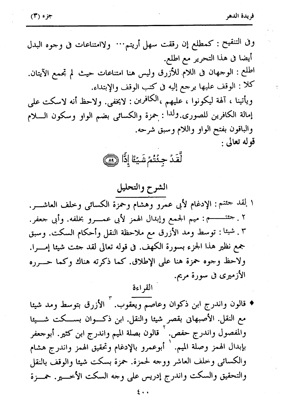 كتاب فريدة الدهر في تأصيل وجمع القراءات (اسم الجزء: 3)