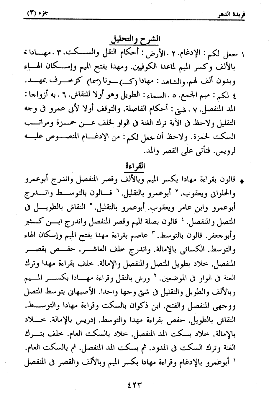 كتاب فريدة الدهر في تأصيل وجمع القراءات (اسم الجزء: 3)