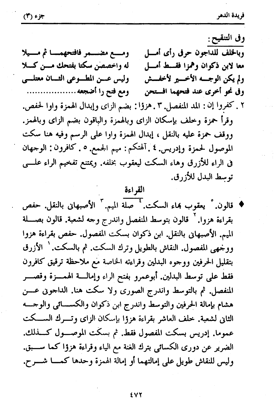 كتاب فريدة الدهر في تأصيل وجمع القراءات (اسم الجزء: 3)