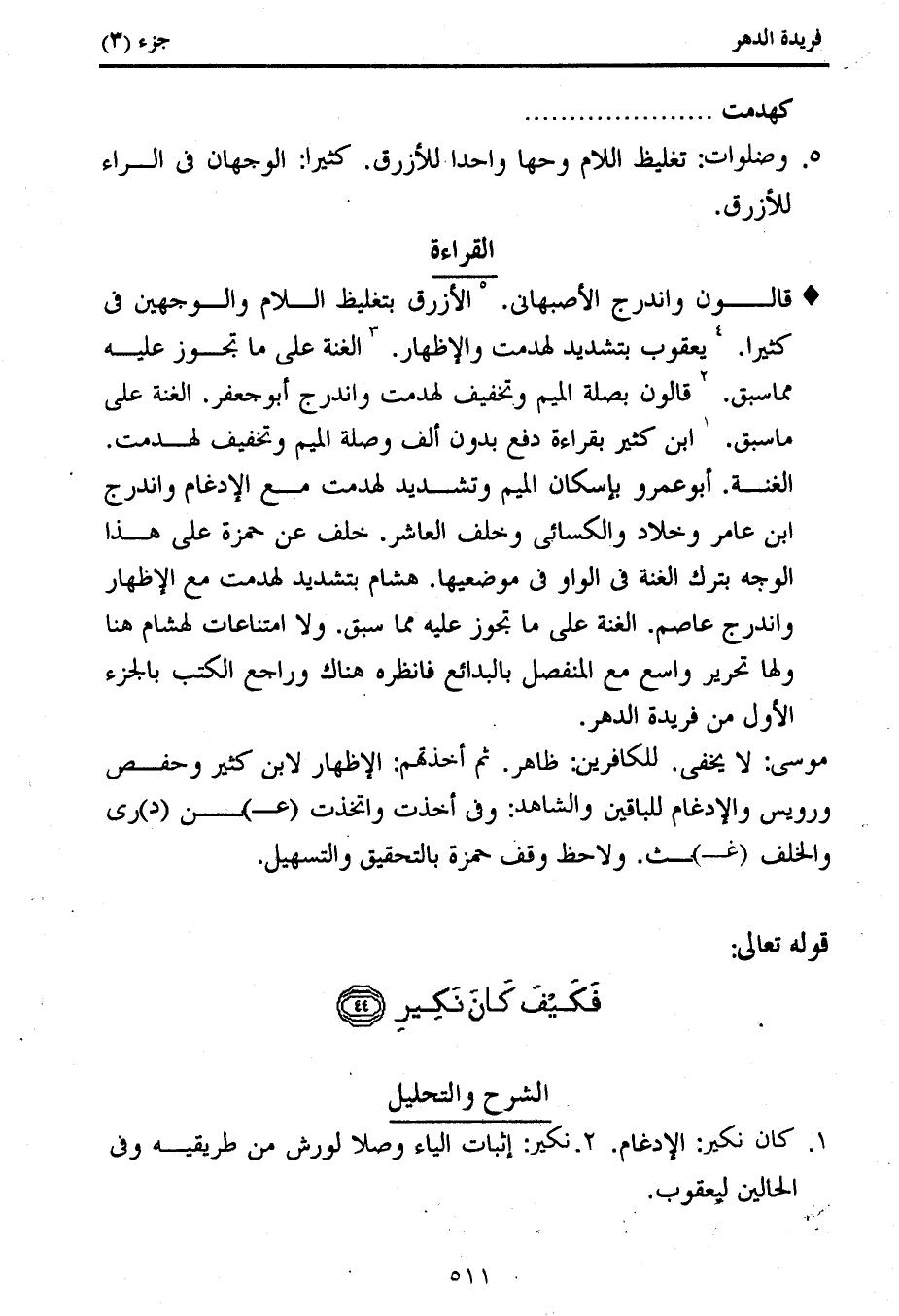 1. كان نكير: الإدغام. 2. نكير: إثبات الياء وصلا لورش من طريقيه وفى الحالين ليعقوب.