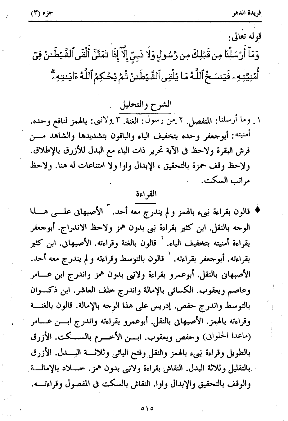 كتاب فريدة الدهر في تأصيل وجمع القراءات (اسم الجزء: 3)