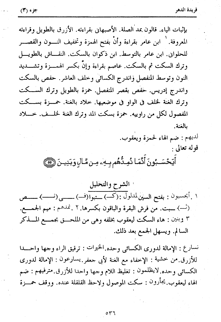 1. أيحسبون: بفتح السين لمدلول: (ك) تبوا (ف) ى (ن) ص (ث) بت. من فرش البقرة والباقون بكسرها. 2. نمدهم: ميم الجمع.