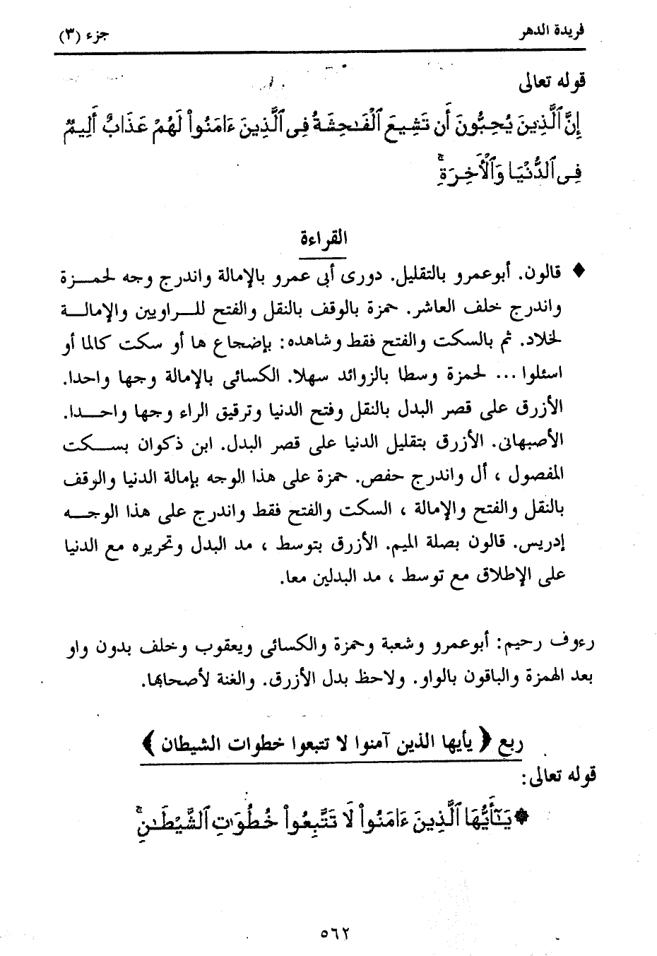 كتاب فريدة الدهر في تأصيل وجمع القراءات (اسم الجزء: 3)