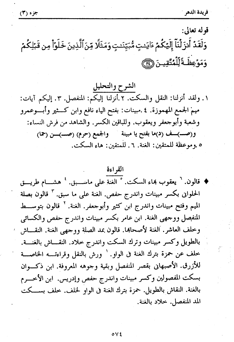 1. ولقد أنزلنا: النقل والسكت. 2. أنزلنا إليكم: المنفصل. 3. إليكم آيات:
