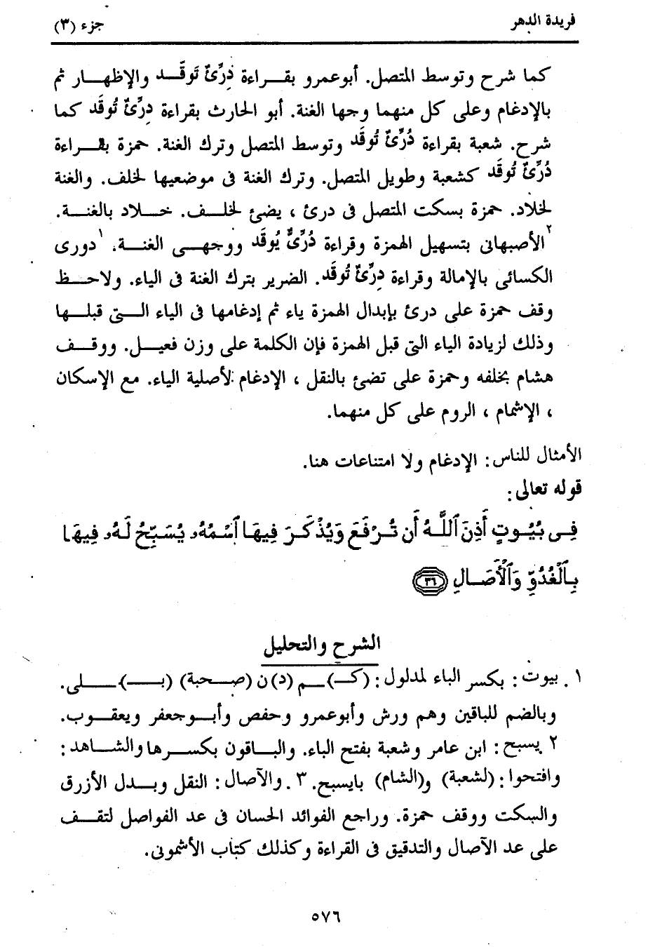 وافتحوا: (لشعبة) و (الشام) با يسبح. 3. والآصال: النقل وبدل الأزرق والسكت ووقف حمزة. وراجع الفوائد الحسان فى عد الفواصل لتقف على عد الآصال والتدقيق فى القراءة وكذلك كتاب الأشمونى.