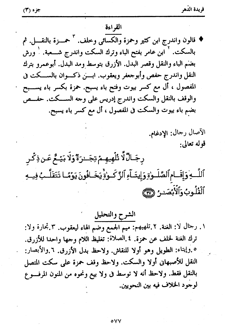 1. رجال لا: الغنة. 2. تلهيهم: ميم الجمع وضم الهاء ليعقوب. 3. تجارة ولا: