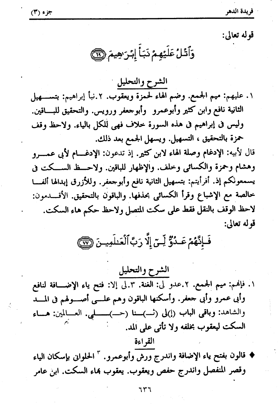 1. عليهم: ميم الجمع. وضم الهاء لحمزة ويعقوب. 2. نبأ إبراهيم: بتسهيل الثانية نافع وابن كثير وأبو عمرو وأبو جعفر ورويس. والتحقيق للباقين.