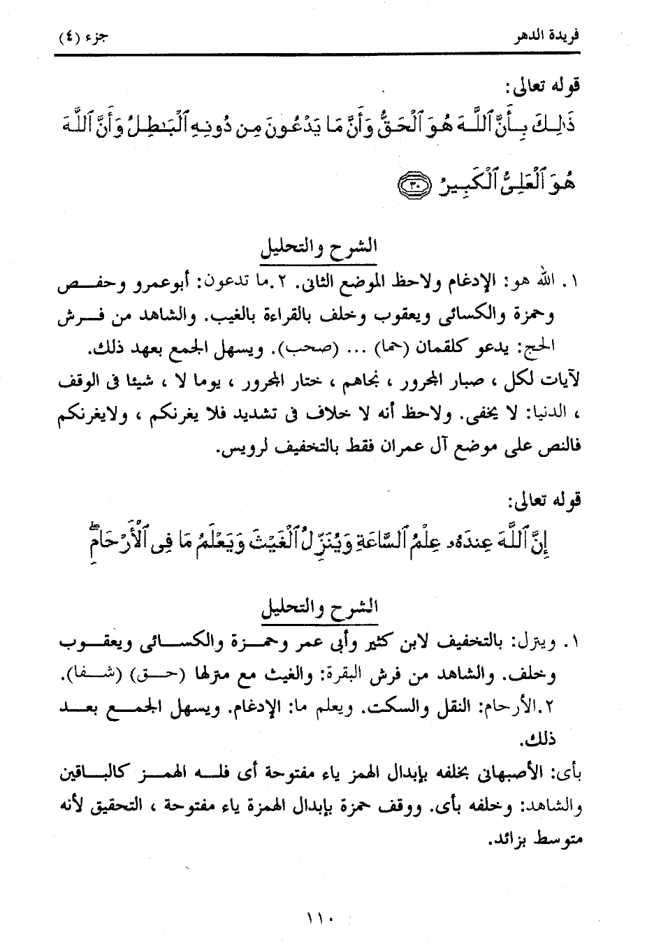 1. الله هو: الإدغام ولاحظ الموضع الثانى. 2. ما تدعون: أبو عمرو وحفص وحمزة والكسائى ويعقوب وخلف بالقراءة بالغيب. والشاهد من فرش الحج: يدعو كلقمان (حما) ... (صحب). ويسهل الجمع بعهد ذلك.