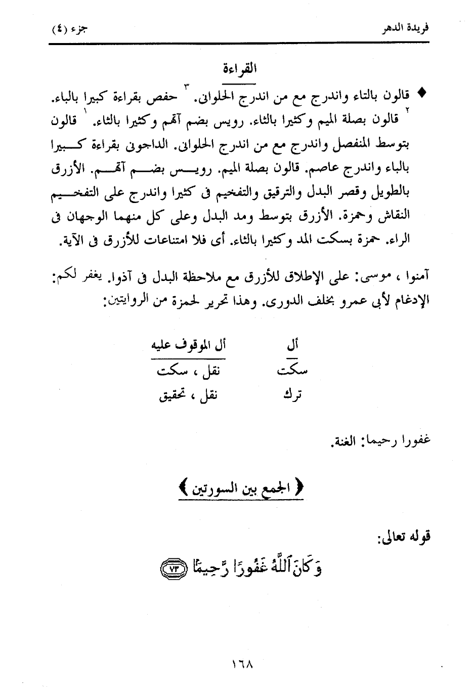 كتاب فريدة الدهر في تأصيل وجمع القراءات (اسم الجزء: 4)