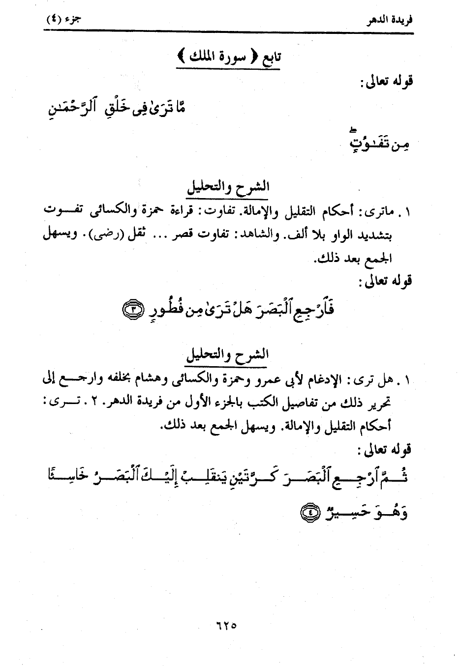 1. ما ترى: أحكام التقليل والإمالة. تفاوت: قراءة حمزة والكسائى تفوت بتشديد الواو بلا ألف. والشاهد: تفاوت قصر ... ثقل (رضى). ويسهل الجمع بعد ذلك.