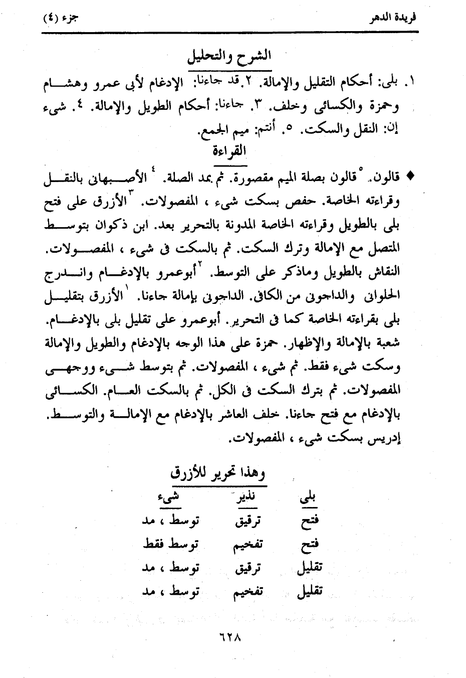 النقاش بالطويل وما ذكر على التوسط. (2) أبو عمرو بالإدغام واندرج الحلوانى والداجونى من الكافى. الداجونى بإمالة جاءنا. (1) الأزرق بتقليل بلى بقراءته الخاصة كما فى التحرير. أبو عمرو على تقليل بلى بالإدغام.