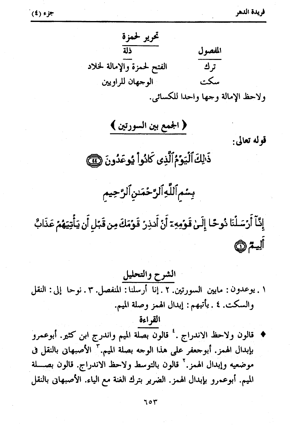 قالون ولاحظ الاندراج. (4) قالون بصلة الميم واندرج ابن كثير. أبو عمرو بإبدال الهمز. أبو جعفر على هذا الوجه بصلة الميم. (3) الأصبهانى بالنقل فى موضعيه وإبدال الهمز. (2) قالون بالتوسط ولاحظ الاندراج. قالون بصلة الميم. أبو عمرو بإبدال الهمز. الضرير بترك الغنة مع الياء. الأصبهانى بالنقل