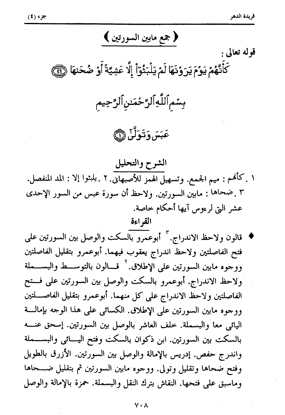 3. ضحاها: ما بين السورتين. ولاحظ أن سورة عبس من السور الإحدى عشر التى لرءوس آيها أحكام خاصة.