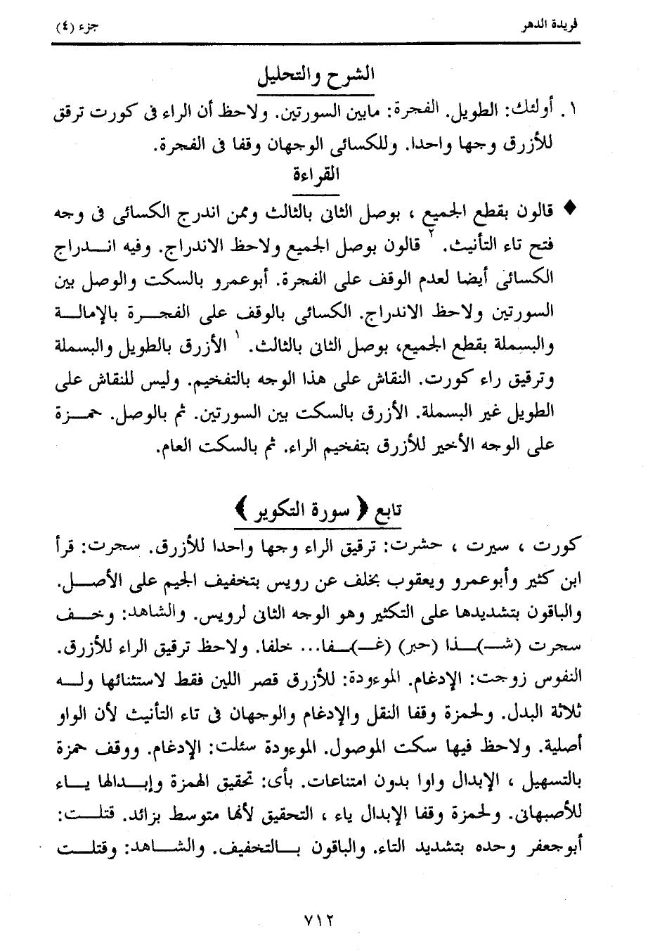 1. أولئك: الطويل. الفجرة: ما بين السورتين. ولاحظ أن الراء فى كورت ترقق للأزرق وجها واحدا. وللكسائى الوجهان وقفا فى الفجرة.