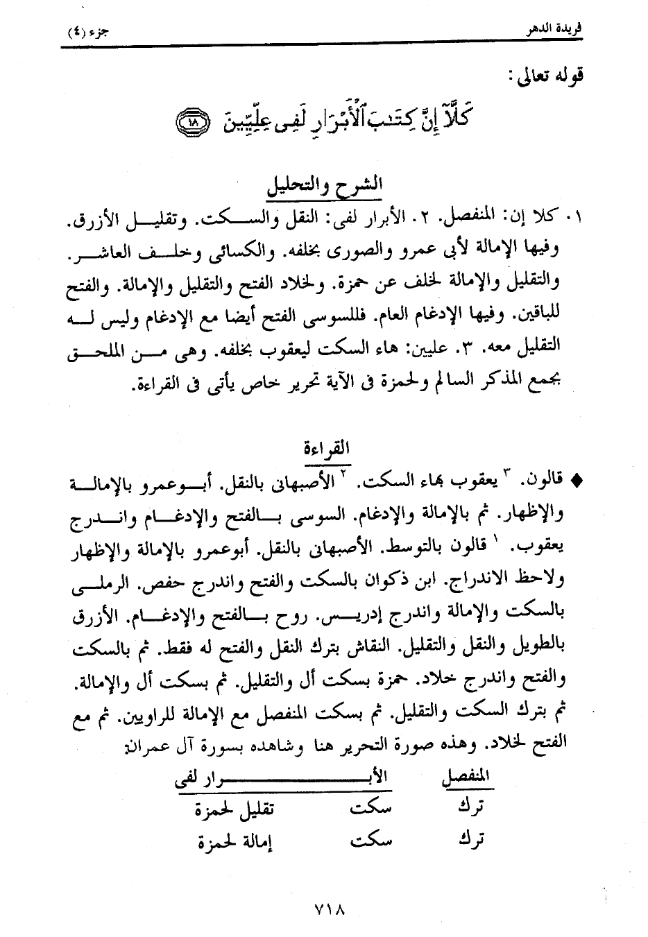 1. كلا إن: المنفصل. 2. الأبرار لفى: النقل والسكت. وتقليل الأزرق.