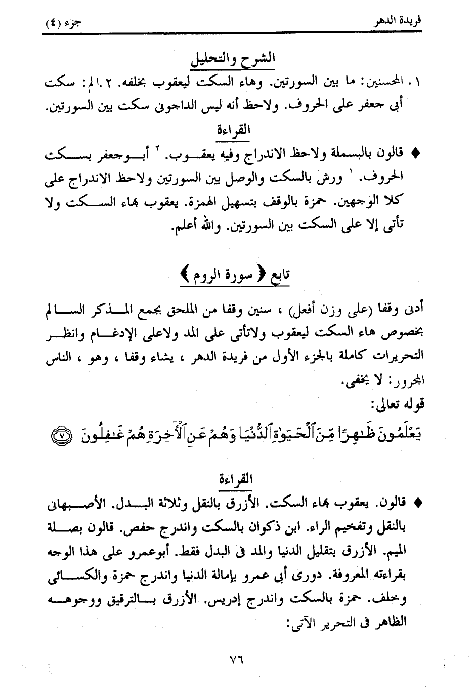 أدنى وقفا (على وزن أفعل)، سنين وقفا من الملحق بجمع المذكر السالم بخصوص هاء السكت ليعقوب ولا تأتى على المد ولا على الإدغام وانظر التحريرات كاملة بالجزء الأول من فريدة الدهر، يشاء وقفا، وهو، الناس المجرور: لا يخفى.