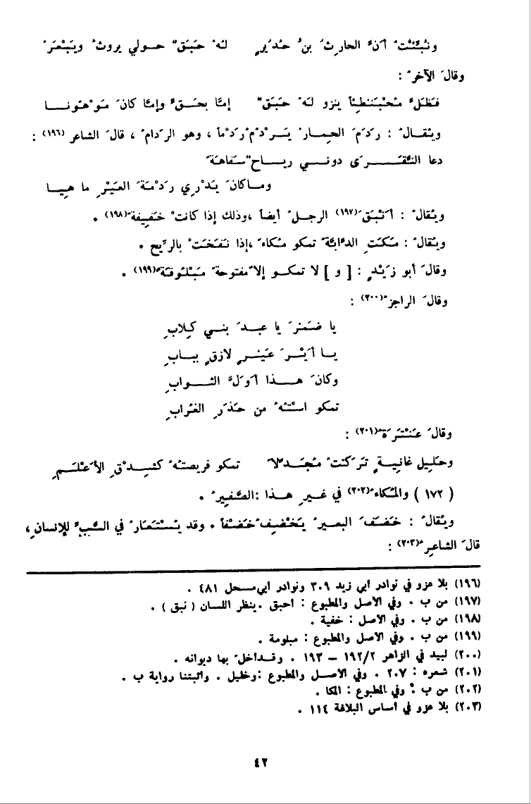 (196) بِلَا عزو فِي نَوَادِر أبي زيد 309 ونوادر أبي مسحل 481.