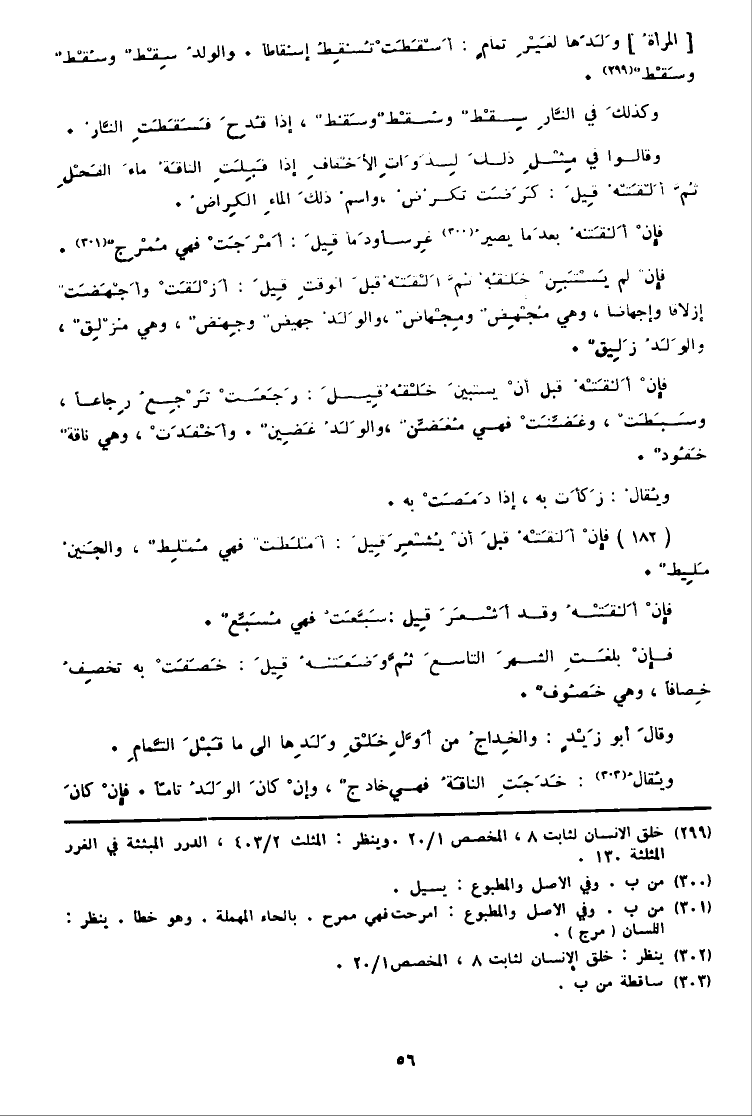 (302) ينظر: خلق الْإِنْسَان لِثَابِت 8، الْمُخَصّص 1 / 20.