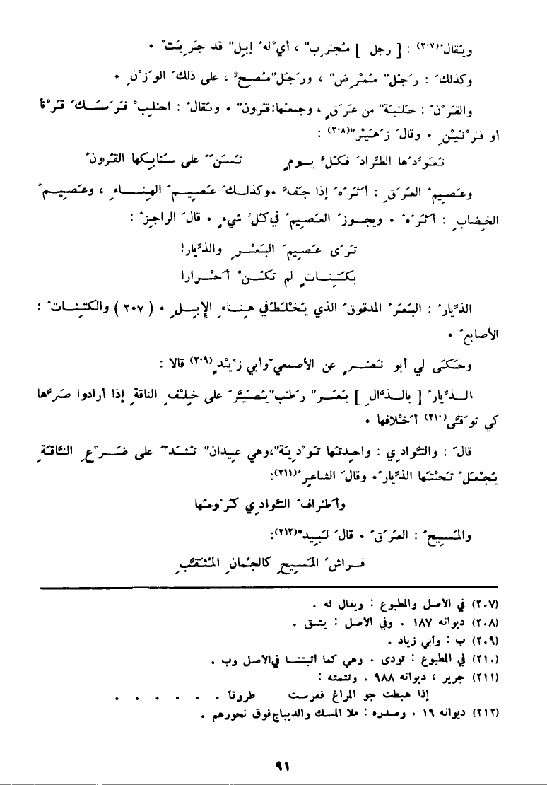 (211) جرير، ديوانه 988. وتتمته: إِذا هَبَطت جو المراغ فعرست طروقاً ... ... ... ... ... . .