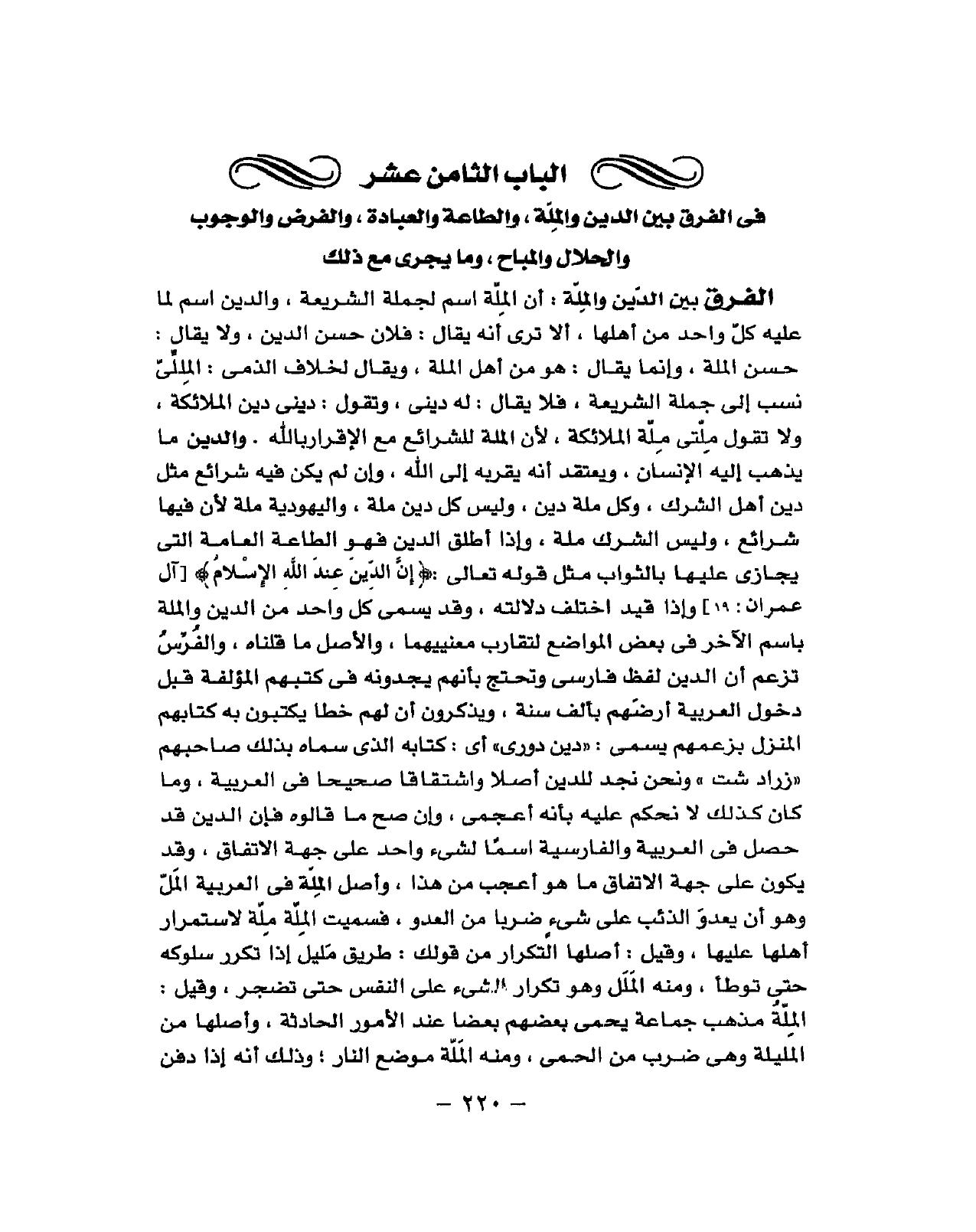 فِي الْفرق بَين الدّين وَالْملَّة وَالطَّاعَة وَالْعِبَادَة وَالْفَرْض وَالْوُجُوب والحلال والمباح وَمَا يجْرِي مَعَ ذَلِك