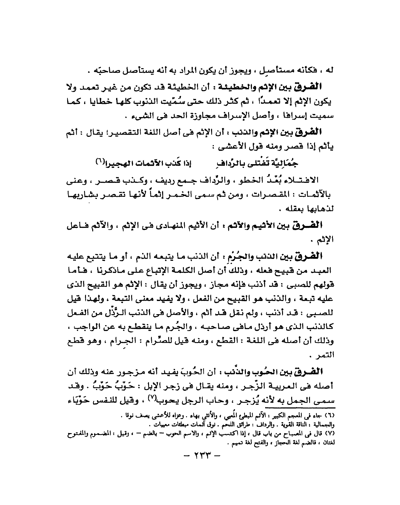 أَن الْإِثْم فِي أصل اللُّغَة التَّقْصِير أَثم يَأْثَم إِذا قصر وَمِنْه قَول الْأَعْشَى من المتقارب