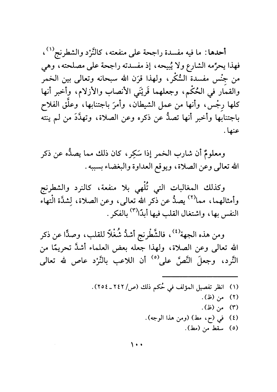 وكذلك المغالبات التي تُلْهي بلا منفعة، كالنرد والشطرنج وأمثالهما، مما (¬٢) يصدُّ عن ذكر الله تعالى، وعن الصلاة، لِشدَّة الْتهاء النفس بها، واشتغال القلب فيها أبدًا (¬٣) بالفكر.