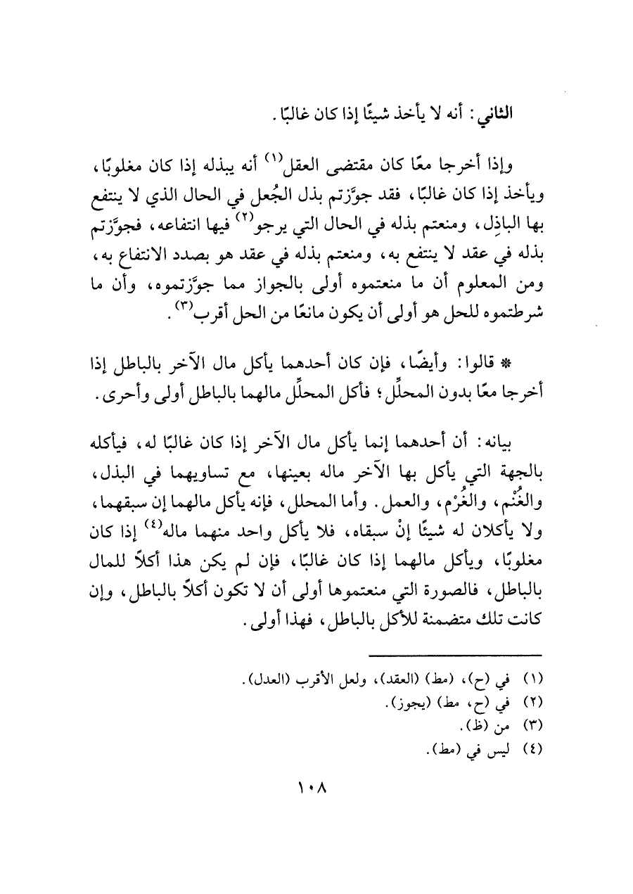 * قالوا: وأيضًا، فإن كان أحدهما يأكل مال الآخر بالباطل إذا أخرجا معًا بدون المحلِّل؛ فأكل المحلِّل مالهما بالباطل أولى وأحرى.