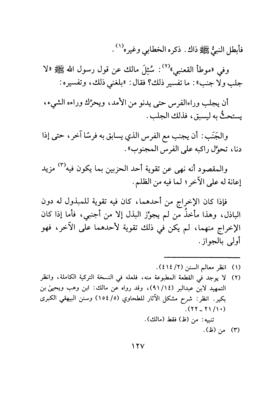 وفي "موطأ القعنبي" (¬٢): سُئِلَ مالك عن قول رسول الله - صلى الله عليه وسلم - "لا جلب ولا جنب": ما تفسير ذلك؟ فقال: "بلغني ذلك، وتفسيره: