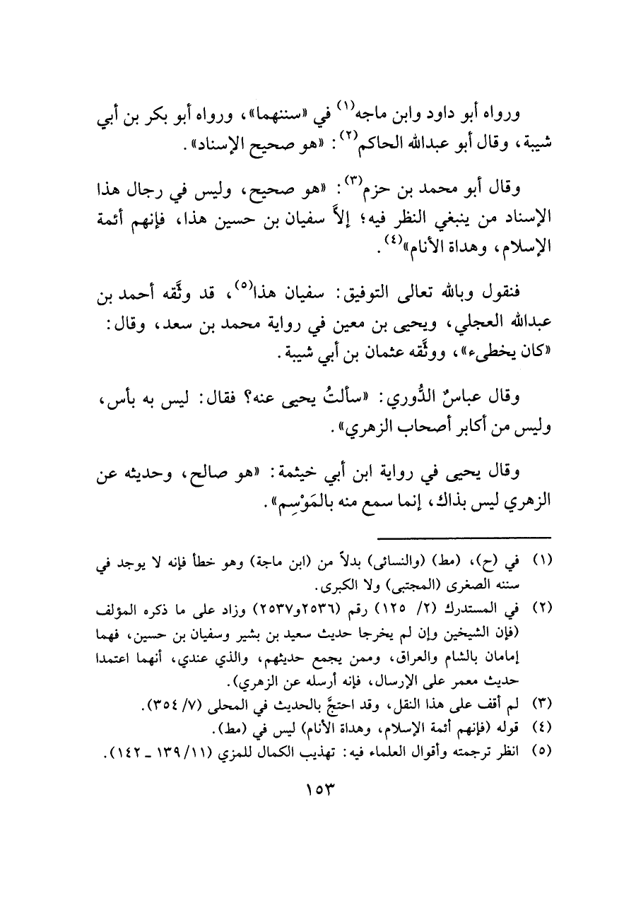 وقال أبو محمد بن حزم (¬٣): "هو صحيح، وليس في رجال هذا الإسناد من ينبغي النظر فيه؛ إلَّا سفيان بن حسين هذا، فإنهم أئمة الإسلام، وهداة الأنام" (¬٤).