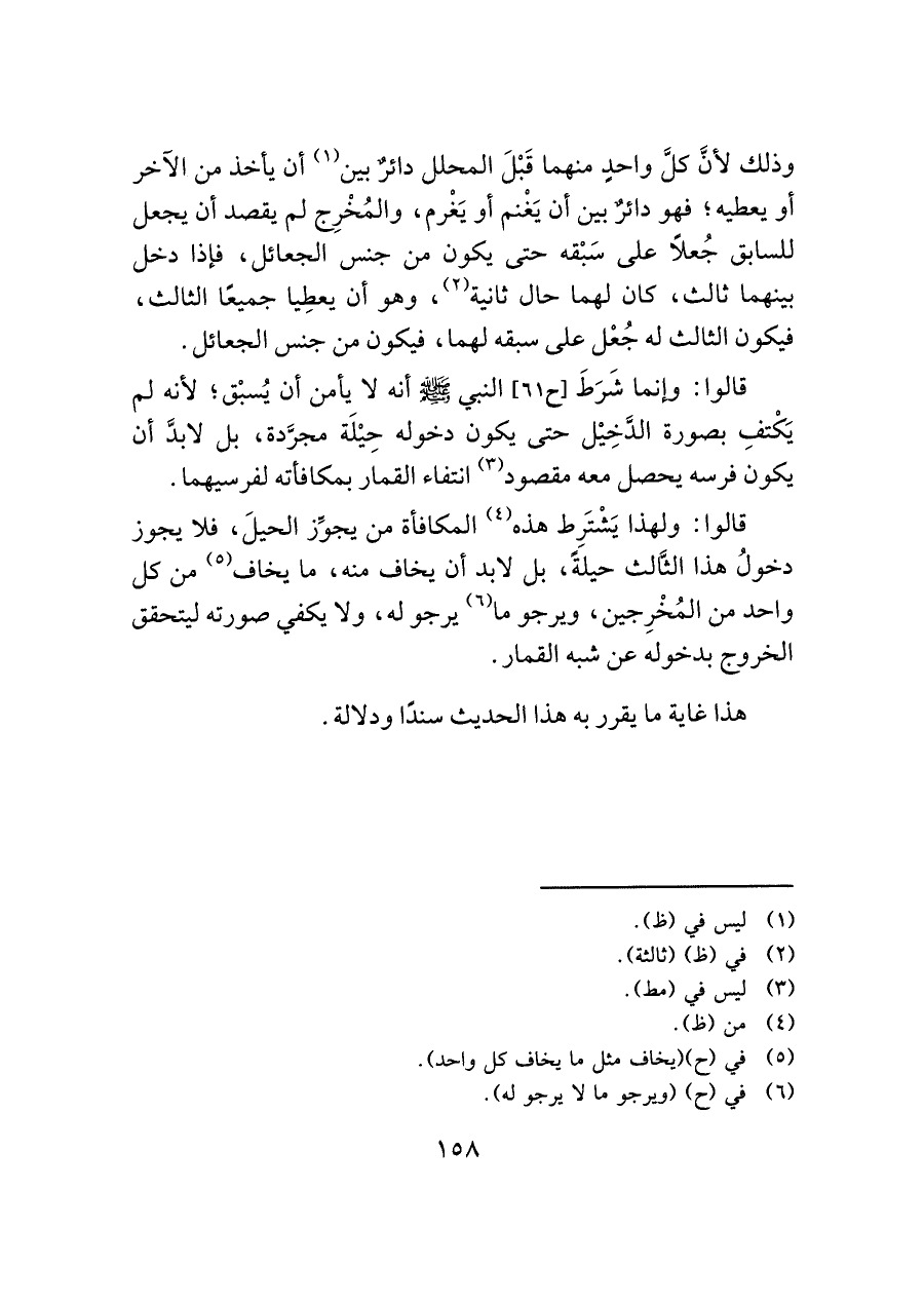 قالوا: ولهذا يَشْتَرِط هذه (¬٤) المكافأة من يجوِّز الحيلَ، فلا يجوز دخولُ هذا الثَّالث حيلةً، بل لا بد أن يخاف منه، ما يخاف (¬٥) من كل واحد من المُخْرِجين، ويرجو ما (¬٦) يرجو له، ولا يكفي صورته ليتحقق الخروج بدخوله عن شبه القمار.