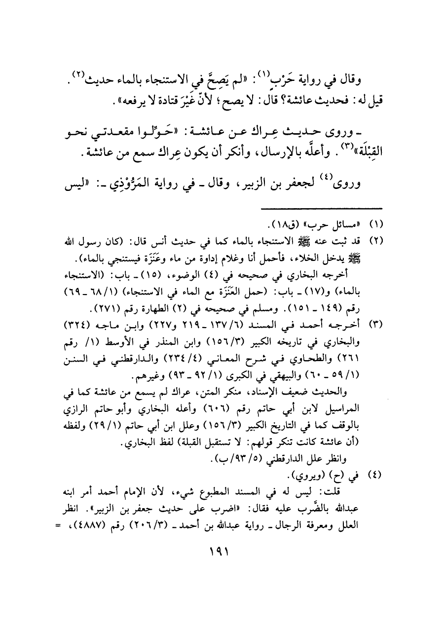 (¬١) "مسائل حرب" (ق ١٨).
