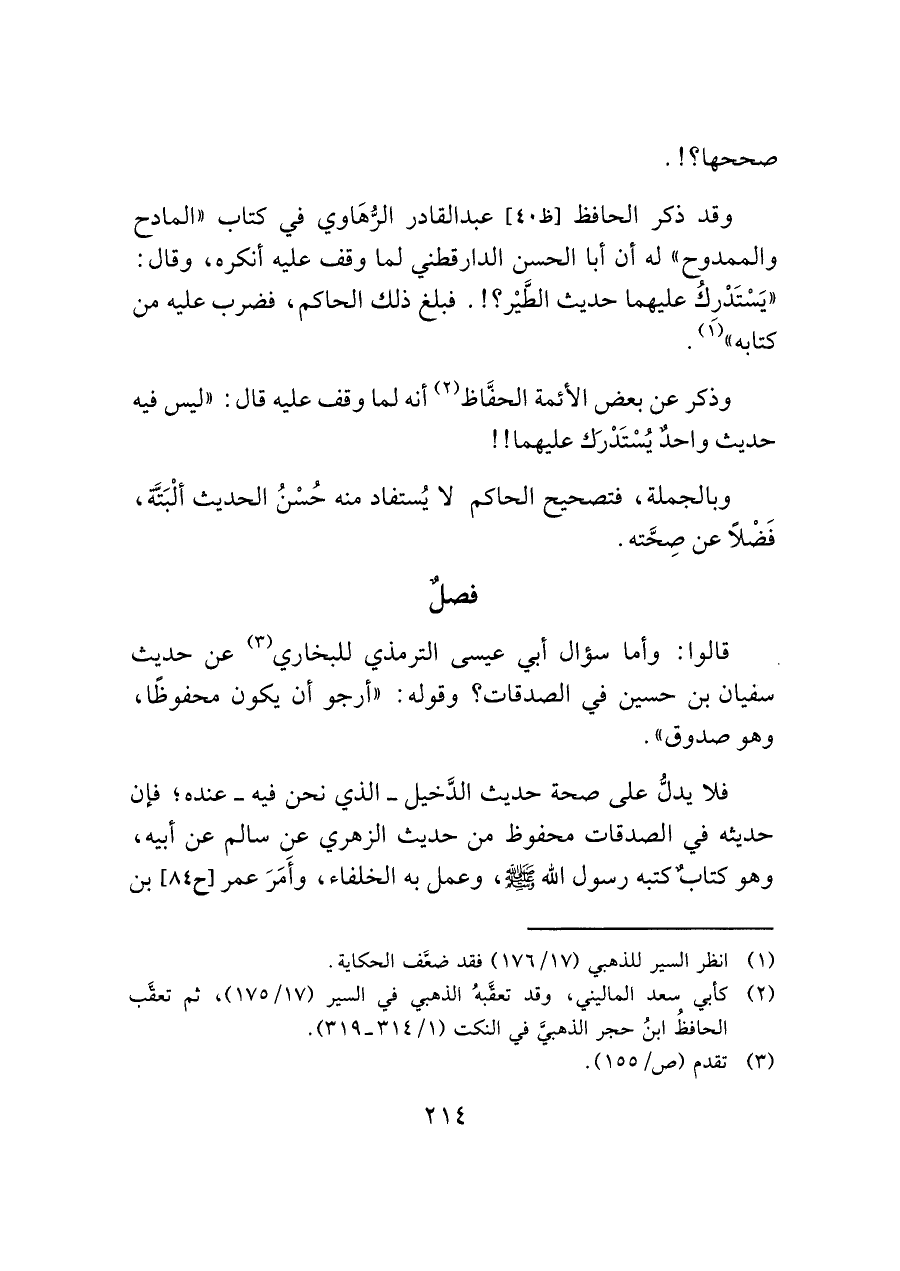 (¬٢) كأبي سعد الماليني، وقد تعقَّبهُ الذهبي في السير (١٧/ ١٧٥)، ثم تعقَّب الحافظُ ابنُ حجر الذهبيَّ في النكت (١/ ٣١٤ - ٣١٩).
