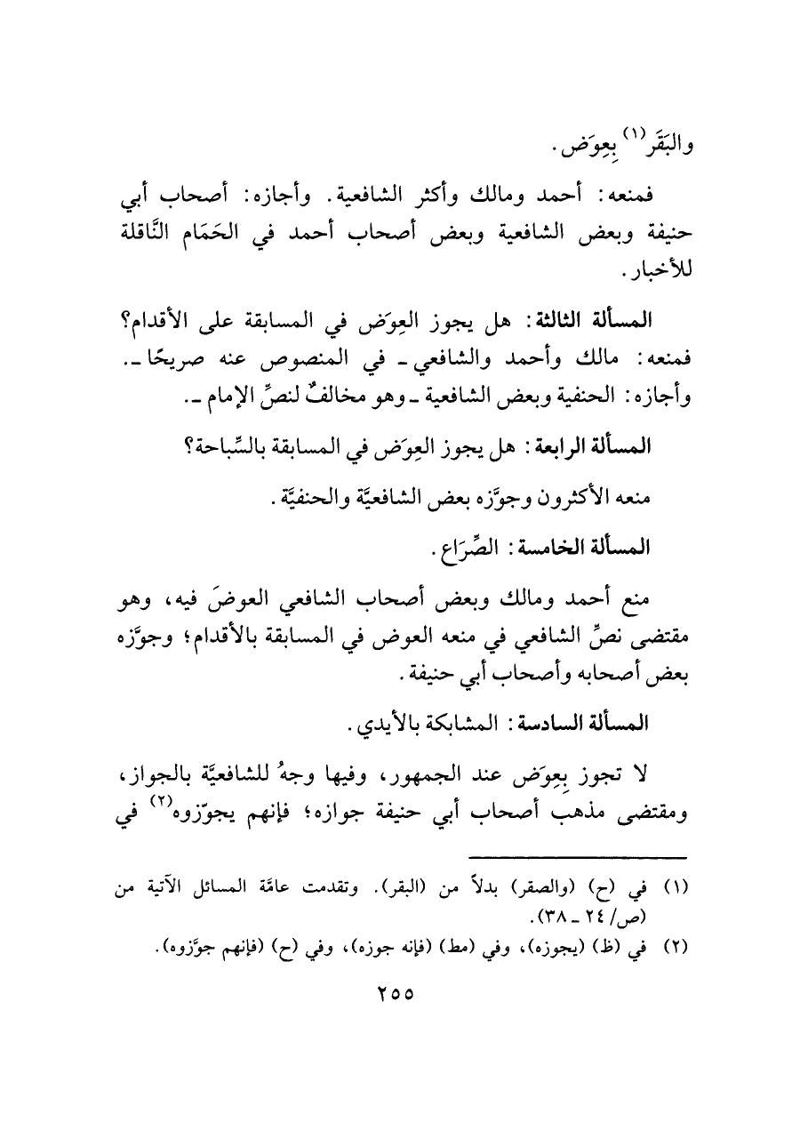 (¬١) في (ح) (والصقر) بدلًا من (البقر). وتقدمت عامَّة المسائل الآتية من (ص/ ٢٤ - ٣٨).