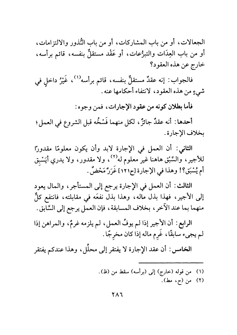 الثالث: أن العمل في الإِجارة يرجع إلى المستأجر، والمال يعود إلى الأجير، فهذا بذل ماله، وهذا بذل نفعَه في مقابلته، فانتفع كلٌّ منهما بما عند الآخر، بخلاف المسابقة، فإن العمل يرجع إلى السَّابق.