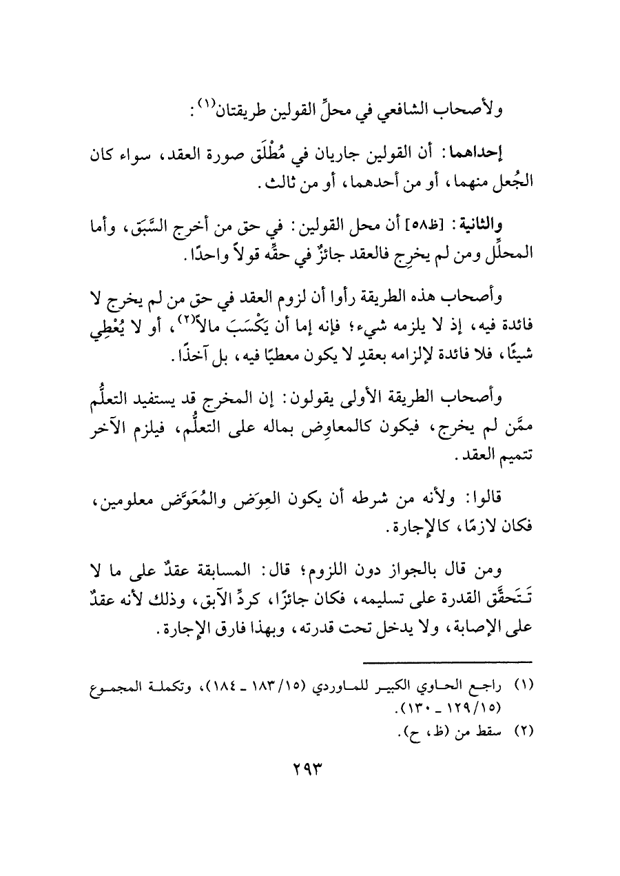 (¬١) راجع الحاوي الكبير للماوردي (١٥/ ١٨٣ - ١٨٤)، وتكملة المجموع (١٥/ ١٢٩ - ١٣٠).