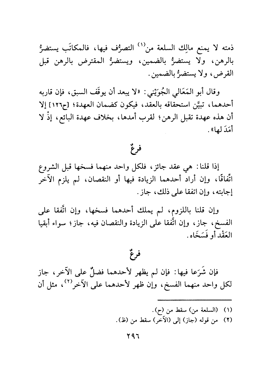 ذمته لا يمنع مالِك السلعة من (¬١) التصرُّف فيها، فالمكاتَب يستضرُّ بالرهن، ولا يستضرُّ بالضمين، ويستضرُّ المقترض بالرهن قبل القرض، ولا يستضرُّ بالضمين.