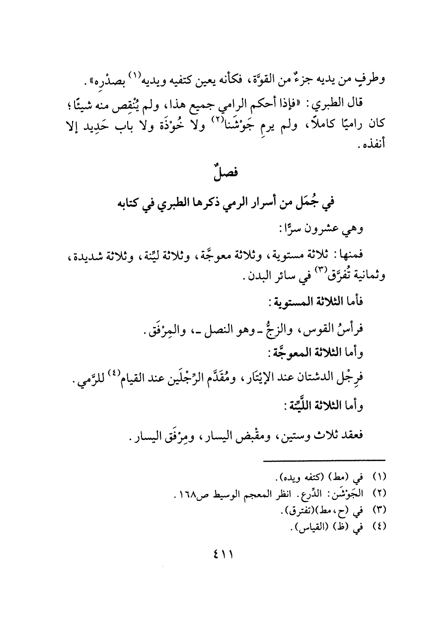 فصلٌ في جُمَل من أسرار الرمي ذكرها الطبري في كتابه