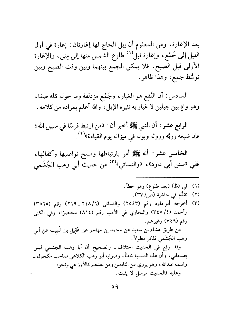 بعد الإغارة، ومن المعلوم أن إبل الحاج لها إغارتان: إغارة في أول الليل إلى جَمْع، وإغارة قبل (¬١) طلوع الشمس منها إلى مِنى، والإغارة الأولى قبل الصبح، فلا يمكن الجمع بينهما وبين وقت الصبح وبين توسُّط جمع، وهذا ظاهر.
