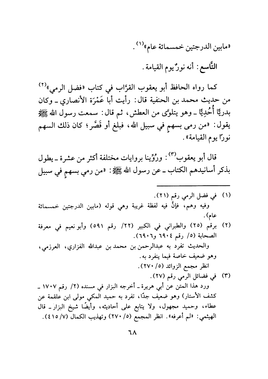 (¬٣) في فضائل الرمي رقم (٢٧).
